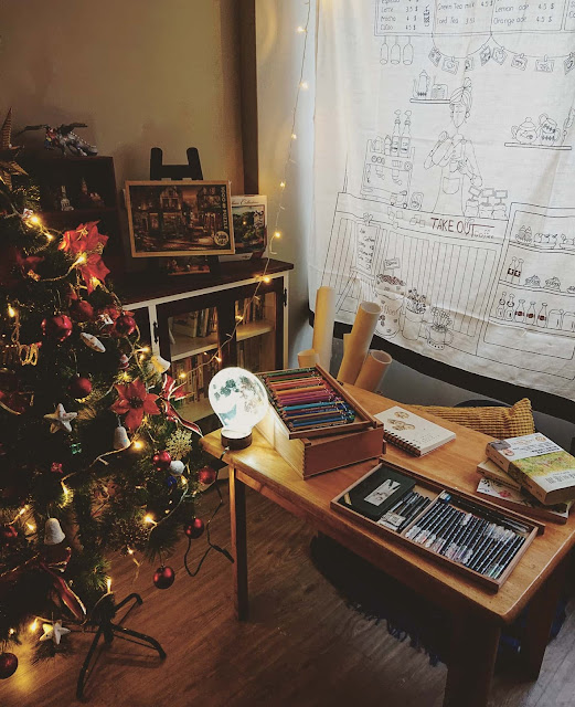 我希望我能給客人的家是這樣的地方,就如同我的小天地"我的畫室",它很小、有點亂,沒有正常的桌子,這桌子我忘了是從哪裡撿來的,上面還有桌號9號,應該是某一年某個案子業主不要而我覺得可惜就搬回家的。我常常坐在地上,用這桌子畫圖,地上放滿我的畫具,我媽媽都覺得我房間超亂,但這樣我才能順手拿到適合的畫具來畫畫啊!它就是只適合我的空間,別人來用就像穿了不合腳的鞋一樣,但它充滿著我的個性。